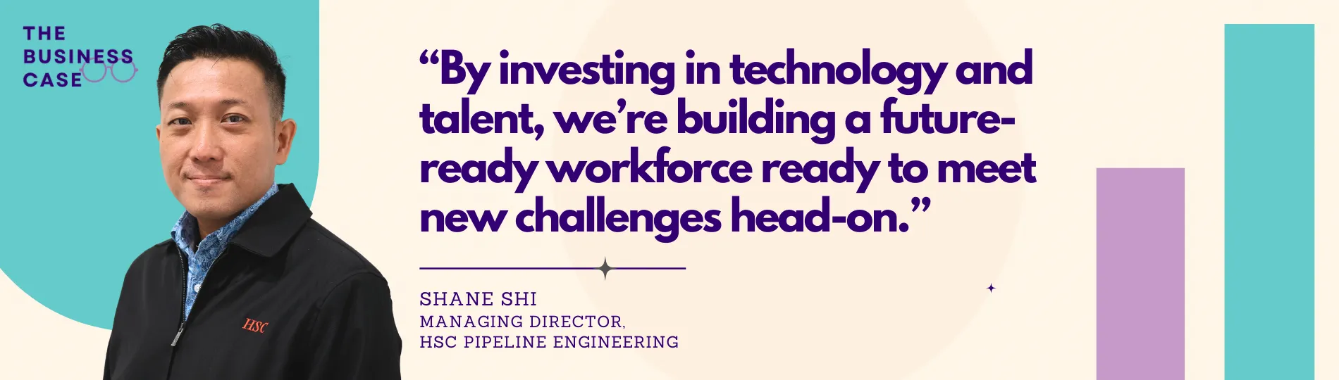 With over 30 years of experience in pipeline construction for Singapore’s gas, water, telecom and power sectors, HSC Pipeline Engineering Pte Ltd recognised that staying competitive meant investing in both technology and people. The company embarked on a business transformation journey to optimise operations and strengthen its human capital practices.